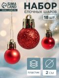 Ёлочные игрушки «Небылица», шары новогодние, d=2 см, набор 18 шт., красный