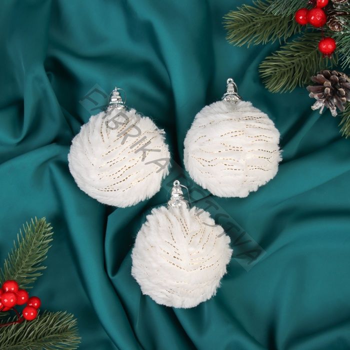 Ёлочные игрушки «Нежность», шары новогодние, d=8 см, набор 3 шт., полосы, белый