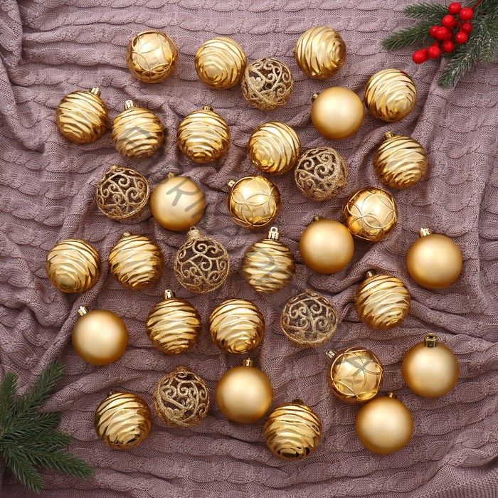 Ёлочные игрушки «Николь узоры», шары новогодние, d=6 см, набор 34 шт., золото