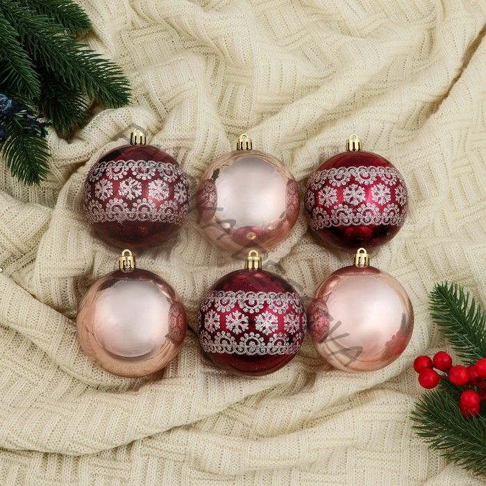 Ёлочные игрушки «Ночка», d=8 см, 6 шт., цветы узор, бордовый/золотистый