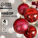 Ёлочные игрушки «Ночка», шары новогодние, d=8 см, набор 4 шт., узоры, красный