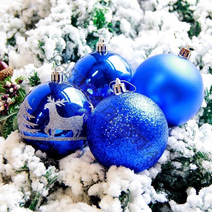 Ёлочные игрушки «Олень», шары новогодние, набор 6 шт., d=8 см, синий