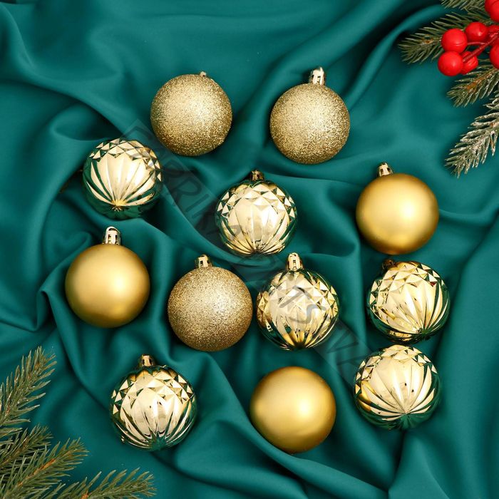 Ёлочные игрушки «Олимпия грани», шары новогодние, d=5 см, 12 шт., золотистый