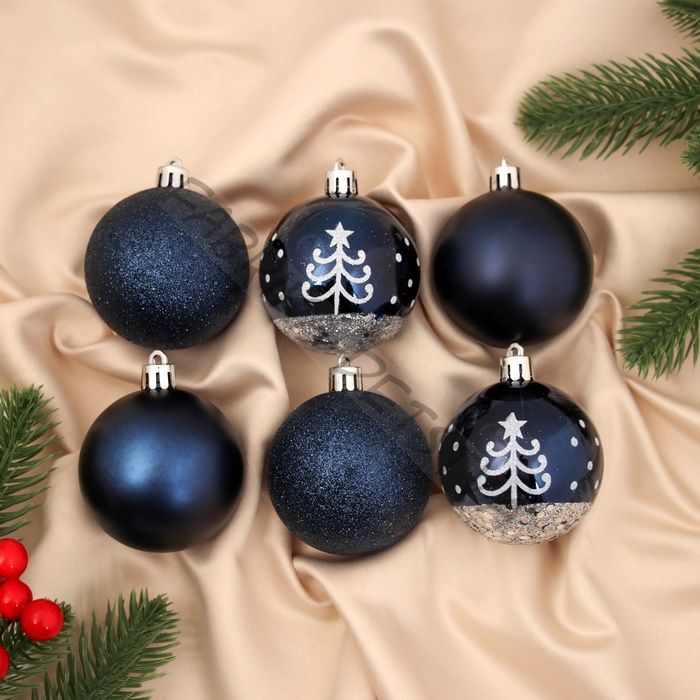 Ёлочные игрушки «Перелив», ёлочка, шары новогодние, набор d=6 см, 6 шт., синий