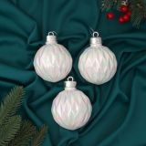 Ёлочные игрушки «Перелив», шары новогодние, d=8 см, набор 3 шт., грани, белый перламутр