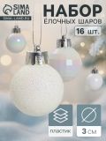 Ёлочные игрушки «Перл», шары новогодние, d=3 см, набор 16 шт., белый