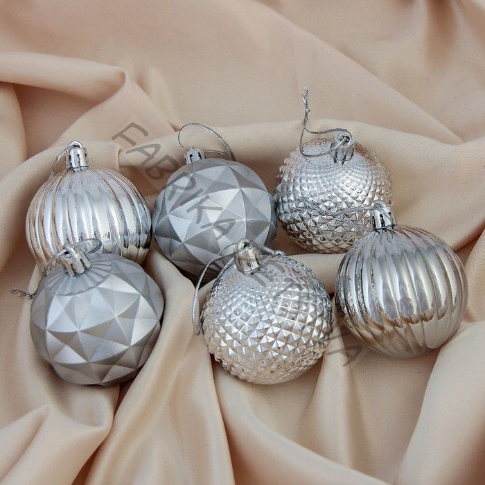 Ёлочные игрушки «Призма», шары новогодние, набор 6 шт., d=6 см, серебристый