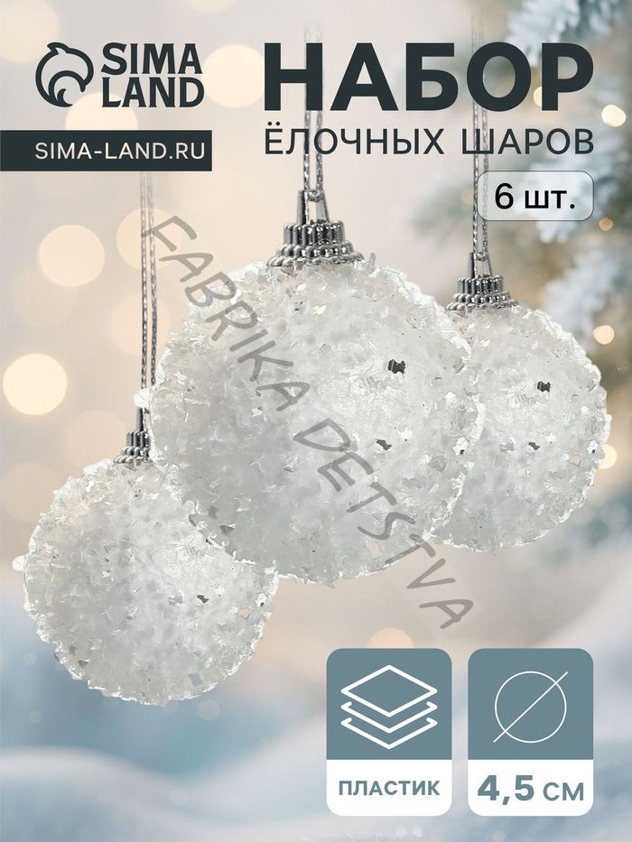 Ёлочные игрушки «Пушинка», шары новогодние, набор 6 шт., d=4.5 см, белый
