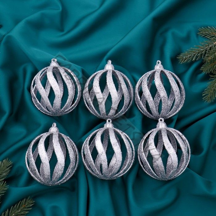 Ёлочные игрушки «Селин», шары новогодние, d=8 см, набор 6 шт., серебро