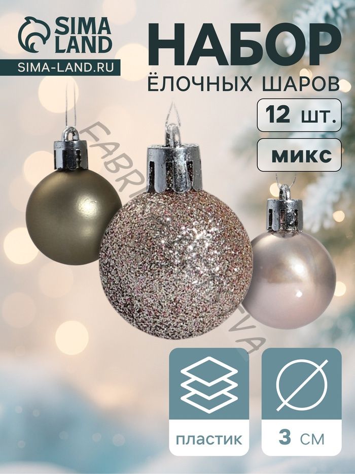 Ёлочные игрушки «Шедар», нежность, шары новогодние, d=3 см, набор 12 шт.