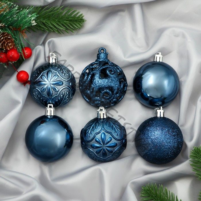 Ёлочные игрушки «Сильва», шары новогодние, d=6 см, набор 12 шт., синий