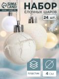 Ёлочные игрушки «Снег», шары новогодние, набор 24 шт., d=4 см, белый