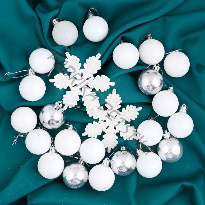 Ёлочные игрушки «Снежинка», новогодние, набор 24 шт., серебро/белый