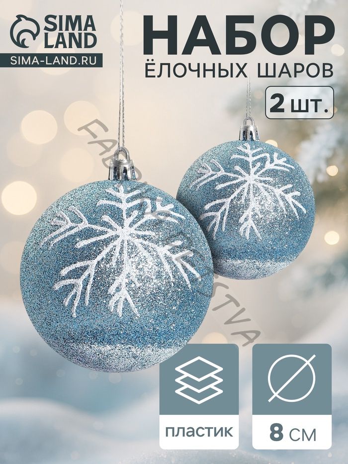 Ёлочные игрушки «Снежок», шары новогодние, d=8 см, 2 шт., бело-голубой