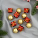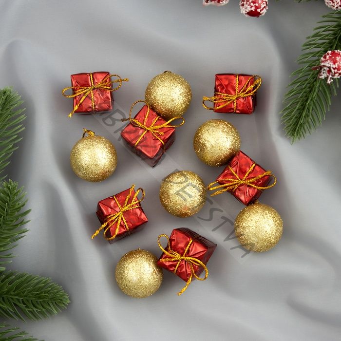 Ёлочные игрушки «Сочельник», новогодние, набор 12 шт. (6 шаров, 6 подарков), МИКС