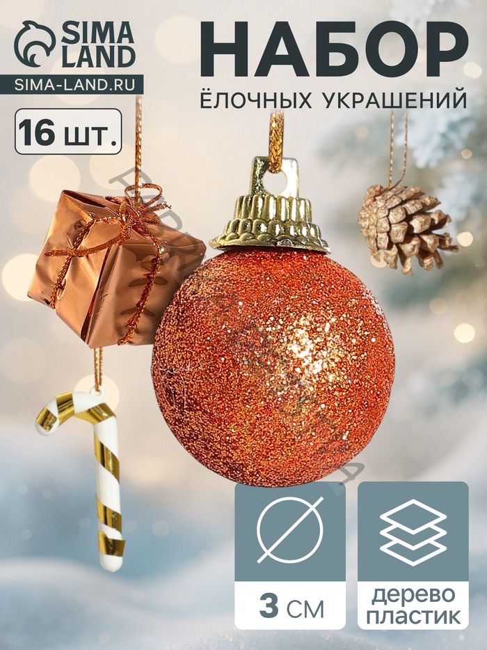 Ёлочные игрушки «Сюрприз», шары новогодние, набор 16 шт. (4 подарка, 4 шишки, 4 шара, 4 палочки)