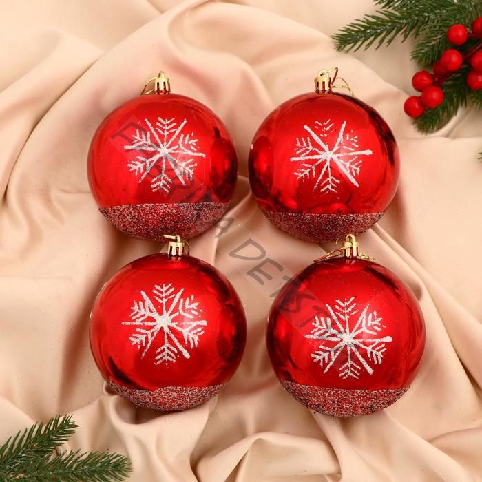 Ёлочные игрушки «Тихий вечер», шары новогодние, d=10 см, набор 4 шт., красный