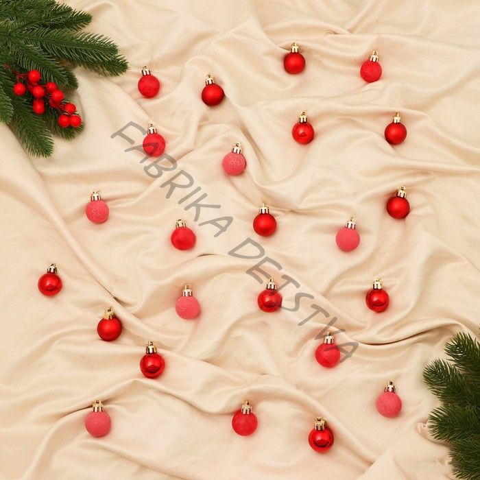 Ёлочные игрушки «Традиция», шары новогодние, d=3 см, набор 24 шт., треск, красный