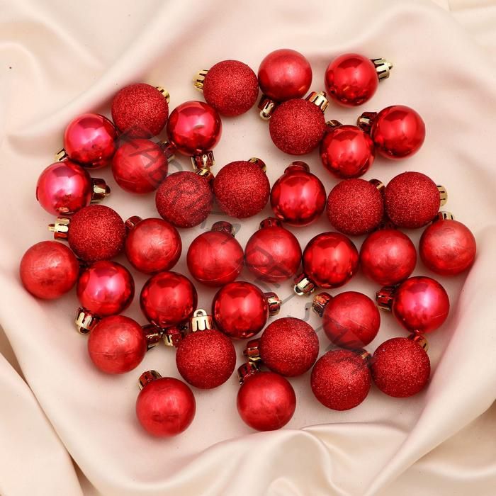 Ёлочные игрушки «Туманный блеск», шары новогодние, d=3 см, набор 36 шт., красный