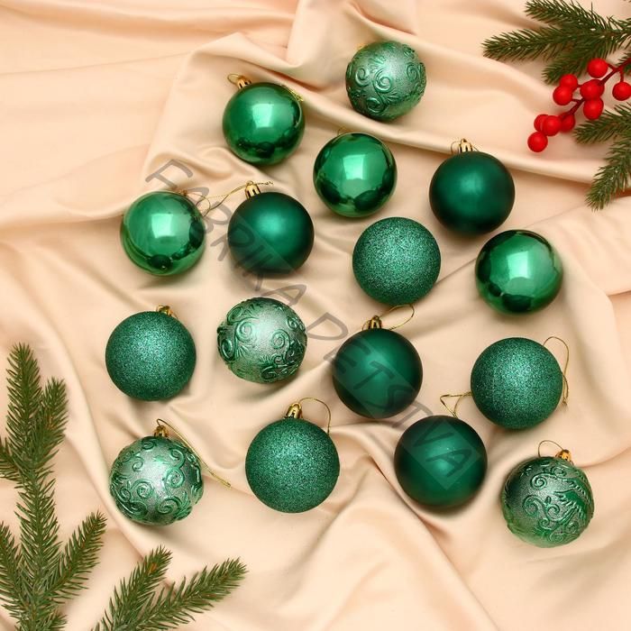 Ёлочные игрушки «Узоры», шары новогодние, набор 16 шт., d=6 см, зелёный