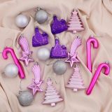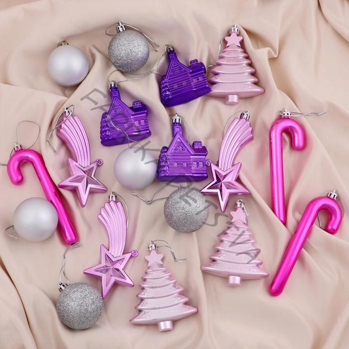 Ёлочные игрушки «Вечер чуда», шары новогодние, набор 18 шт., серебристый/сиреневый
