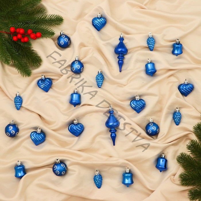Ёлочные игрушки «Весёлый завиток», новогодние, набор 24 шт., 4 см, синий