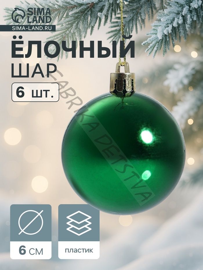 Ёлочные игрушки «Винтажный глянец», шары новогодние, 6 шт., набор d=6 см, зелёный