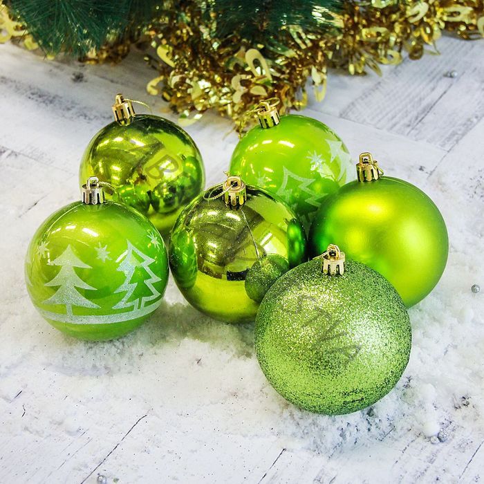 Ёлочные игрушки «Высокие ёлочки», шары новогодние, d=8 см, набор 6 шт., зелёный