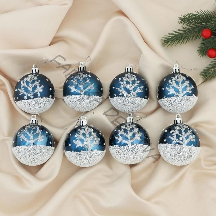 Ёлочные игрушки «Заснеженный лес», шары новогодние, d=6 см, набор 8 шт., сине-белый
