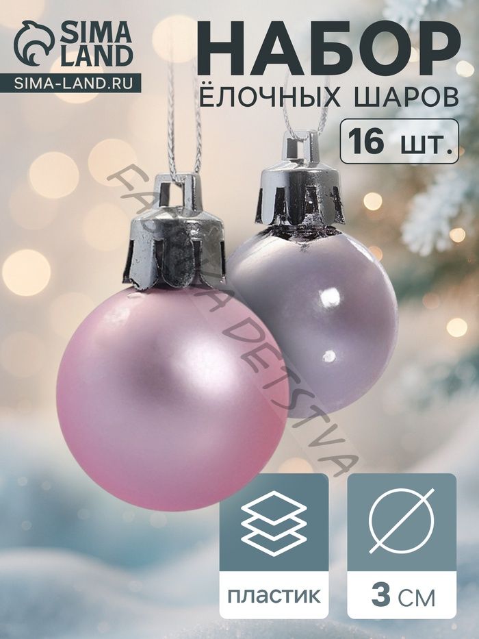 Ёлочные игрушки «Зефир», шары новогодние, набор 16 шт., d=3 см, розовый
