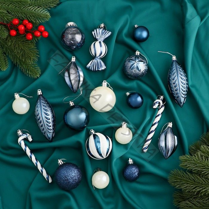 Ёлочные игрушки «Зимняя радость», новогодние, набор 40 шт., бело-синий