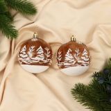 Ёлочные игрушки «Зимняя сказка», лес, шары новогодние, d=8 см, набор 2 шт., бело-коричневый