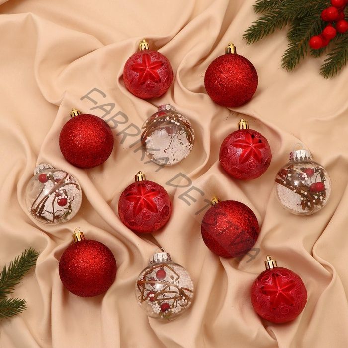 Ёлочные игрушки «Зимушка», шары новогодние, набор 12 шт., d=6 см, красный