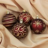 Ёлочные игрушки «Золотые узоры», шары новогодние, d=6 см, набор 4 шт.