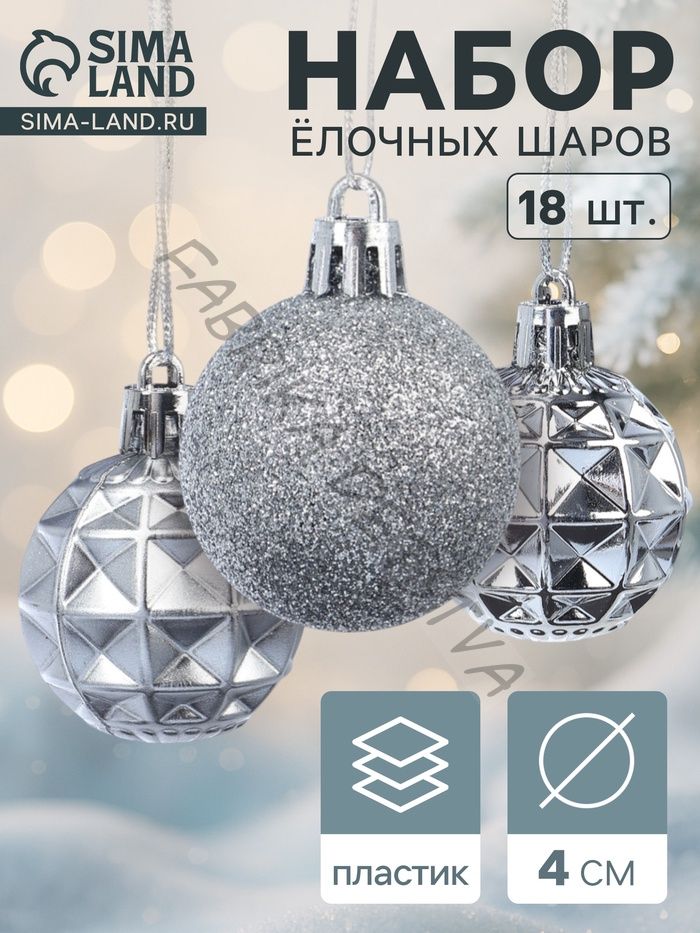 Ёлочные игрушки «Званный вечер», шары новогодние, d=4 см, 18 шт., серебристые