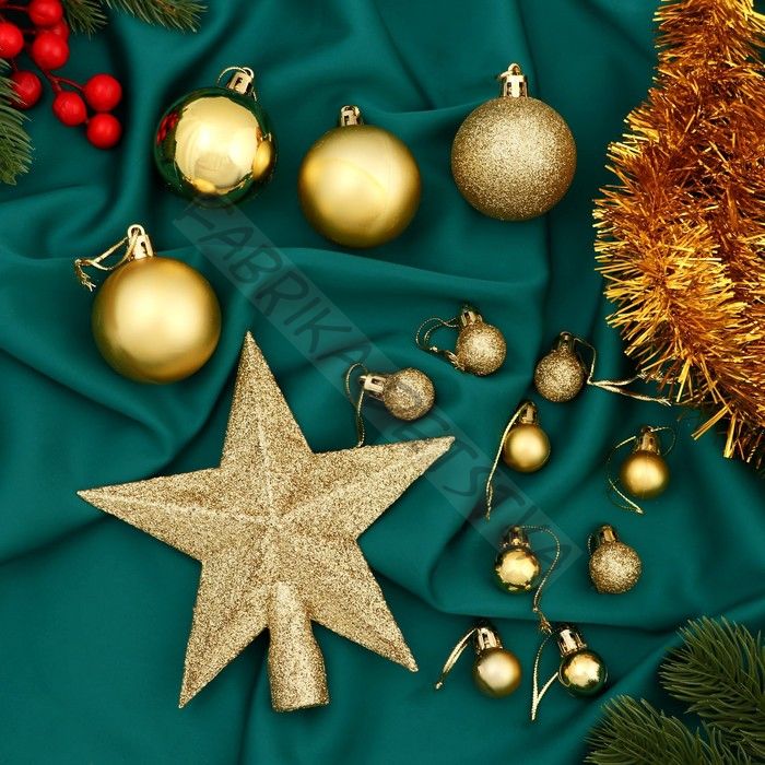 Ёлочные игрушки «Звёздное небо», набор 54 шт., мишура 2.5 см, золото