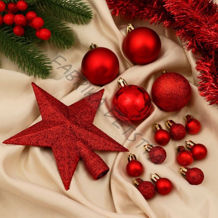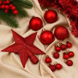 Ёлочные игрушки «Звёздное небо», новогодние, набор 54 шт., мишура 2.5 см, красный