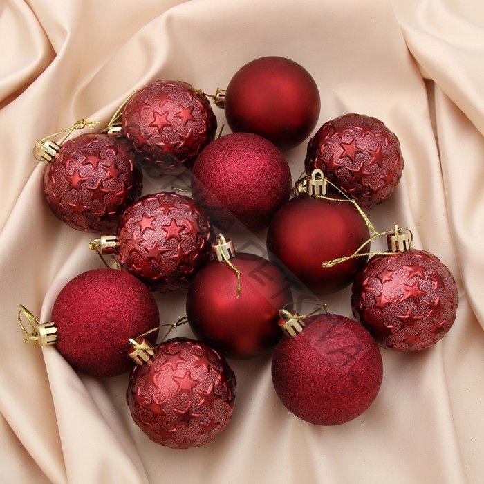 Ёлочные игрушки «Звёздный», шары новогодние, набор 12 шт., d=6 см, бордовый