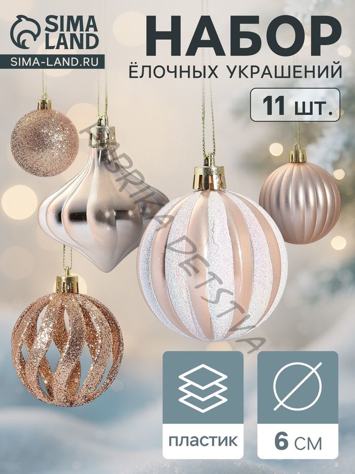 Ёлочные игрушки набор 11 шт. «Чудеса» 6 см, кремовый