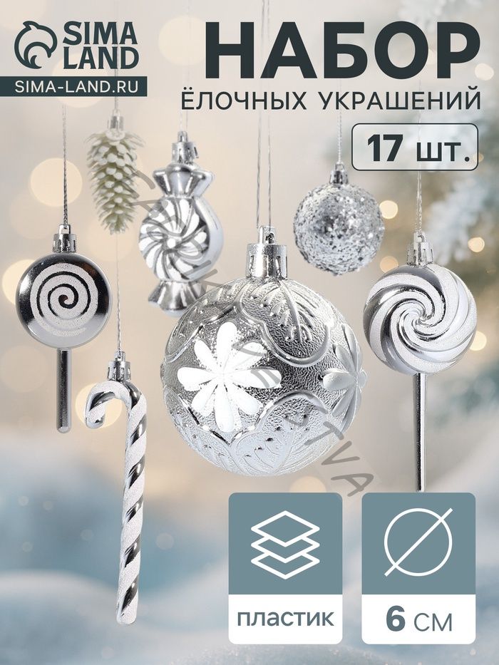 Ёлочные игрушки набор 17 шт. «Ярмарка волшебства» 6 см, серебро