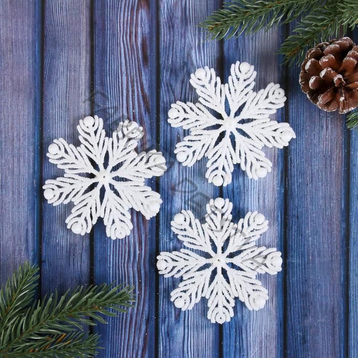 Ёлочные игрушки набор 3 шт. «Зимнее волшебство. Снежинка из пёрышек», 7 см, белый