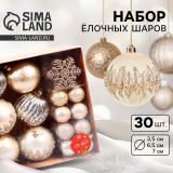 Ёлочные игрушки, набор 30 шт., «Торжество», d=7 и 3.5 см, снежинка-6.5 см, МИКС