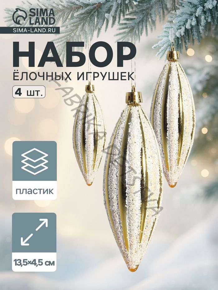 Ёлочные игрушки набор 4 шт. «Сосулька полосатая блестящая» 13.5x4.5 см, золотисто-белый