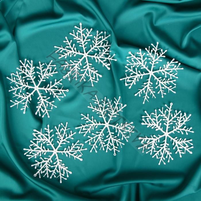 Ёлочные игрушки набор 6 шт. «Зимнее волшебство. Снежинка тоненькая» пластик, d=14 см, белый
