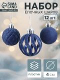 Ёлочные шары набор 12 шт., d=4 см «Бархат. Время карнавала» синий
