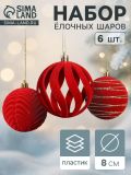 Ёлочные шары набор 6 шт., d=8 см, «Бархат. Карнавал» красный