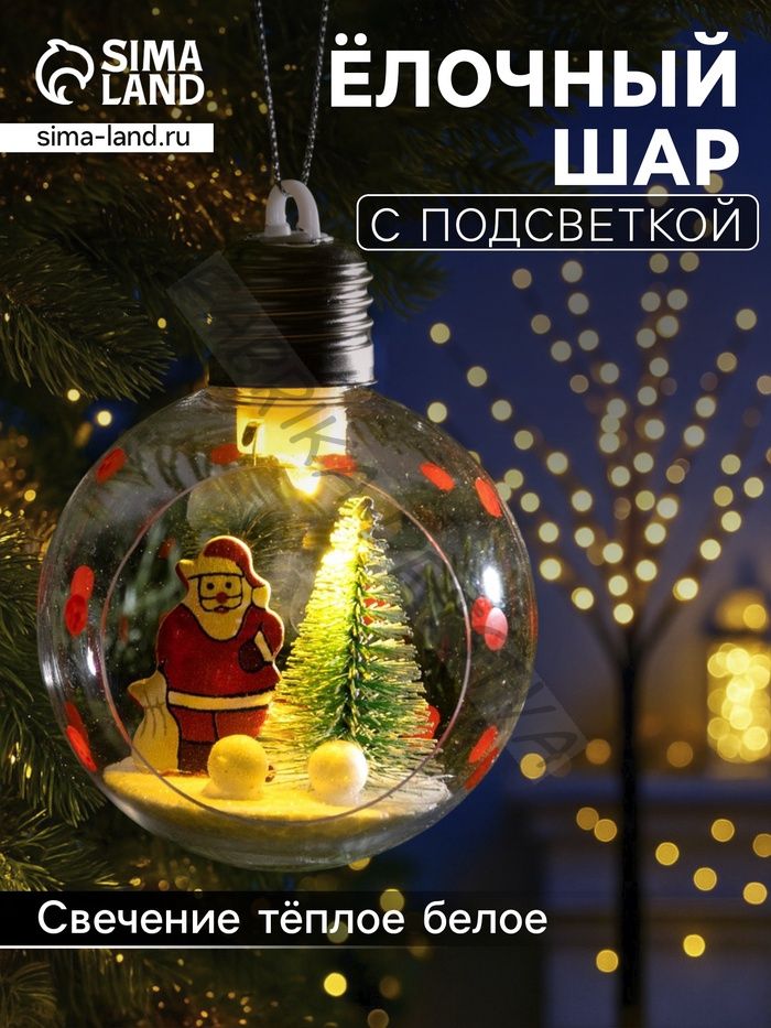 Ёлочный шар «Дед Мороз», d=8 см, 1 LED, от батареек, свечение тёплое белое
