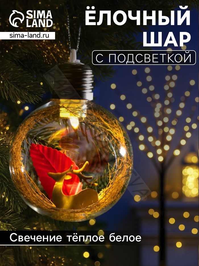 Ёлочный шар «Олень», d=8 см, 1 LED, от батареек, свечение тёплое белое