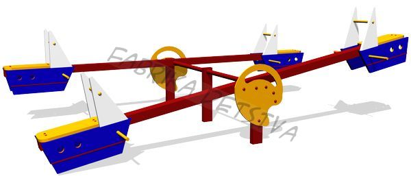 Качели-балансиры уличные «Моряк 2» выполнены из металла и влагостойкой фанеры. Сиденья расположены по краям балансиров, подвижно закрепленных на оси.