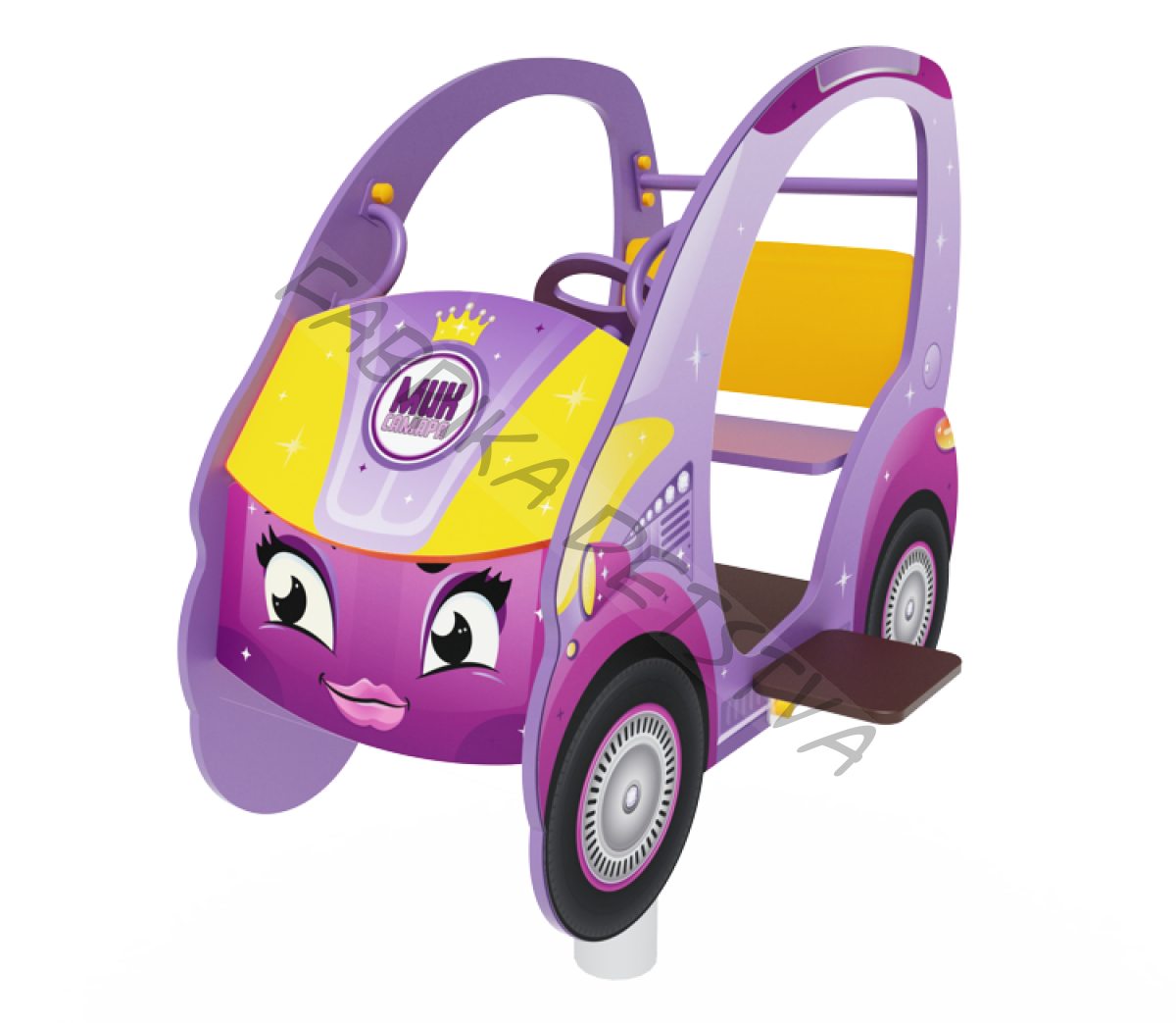 Обработка изделий: Кромки фанеры закруглены, отфрезерованы и шлифованы. Для покрытия изделий из фанеры используется водно-дисперсионная акриловая краска, создающая высококачественное атмосферостойкое и износостойкое покрытие. Краска нетоксична, пожаровзрывобезопасна. Изделия из металла имеют плавные радиусы закругления и тщательную обработку швов. Для покрытия изделий из стали используется экологически чистое, обладающее хорошей устойчивостью к старению в атмосферных условиях, стабильностью цвета антикоррозийное, выдерживающее широкий диапазон температур, двойное порошковое окрашивание. В целях безопасности все отдельно выступающие детали и резьбовые соединения закрыты пластиковыми колпачками и заглушками. Закладные детали опорных стоек – двойное порошковое окрашивание |